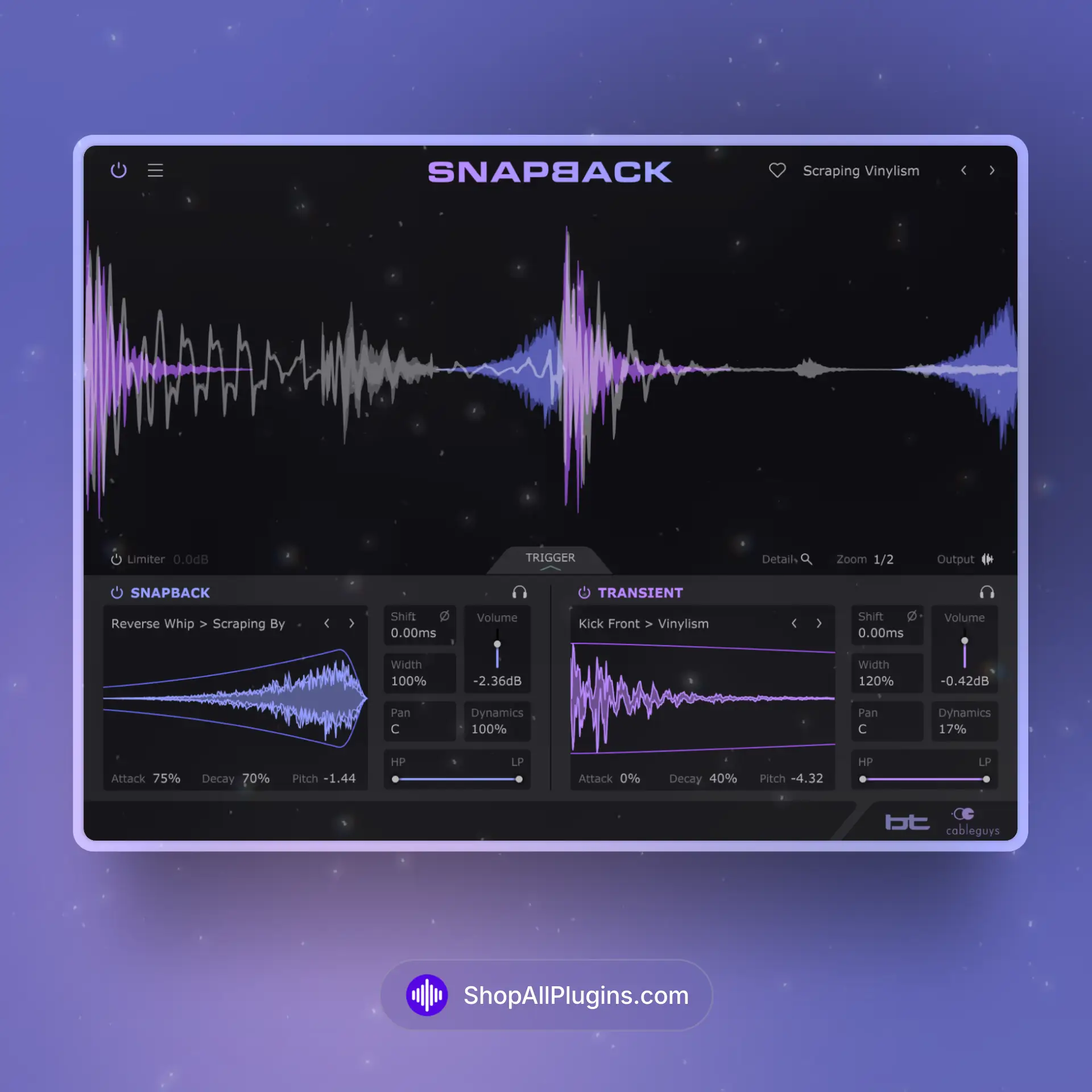 CableGuys Snapback is a game-changer drum layering plugin (VST/AU/AAX) that gives your kicks, snares, hats, and percussion instant character by stacking punchy transient or pre-transient layers—used by top producers in EDM, Trap, Funk, and Pop. 🥁