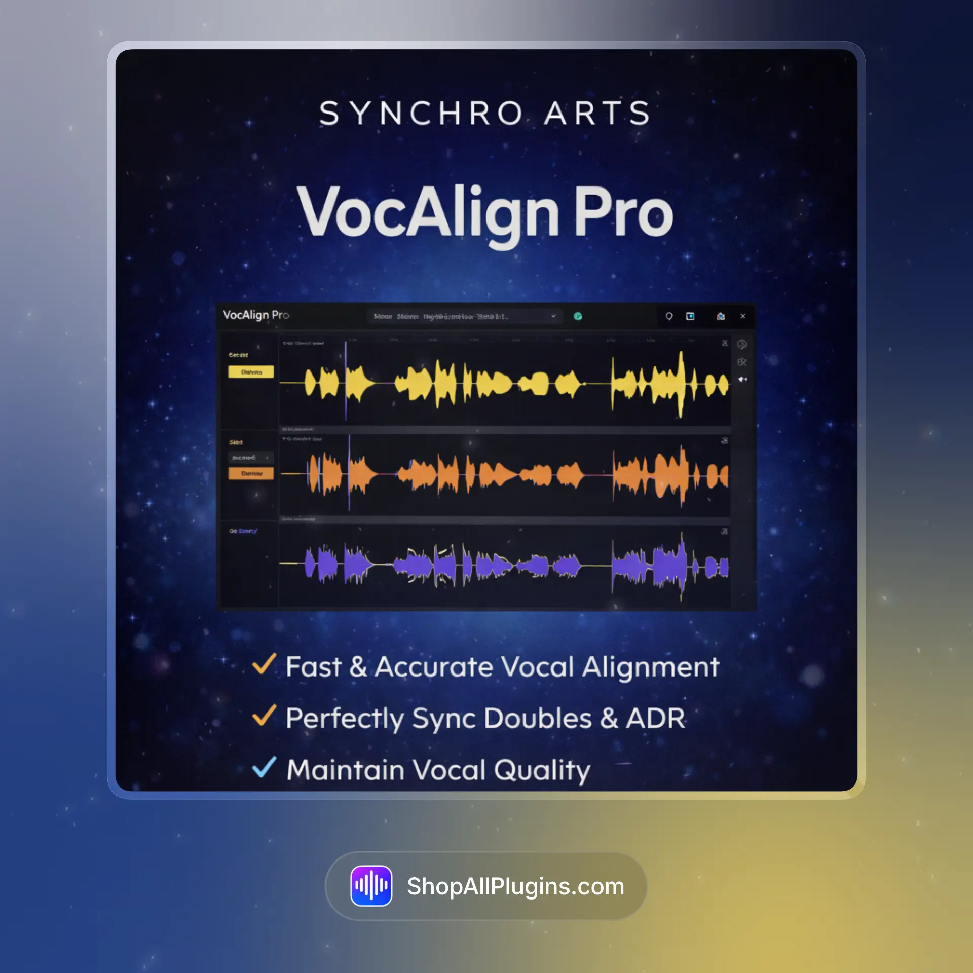 Synchro Arts Vocalign 6 Pro is made for producers and engineers who want tight, professional vocal stacks without hours of manual editing. With fast automatic alignment and deep manual tools, it keeps your workflow efficient and your mixes clean.