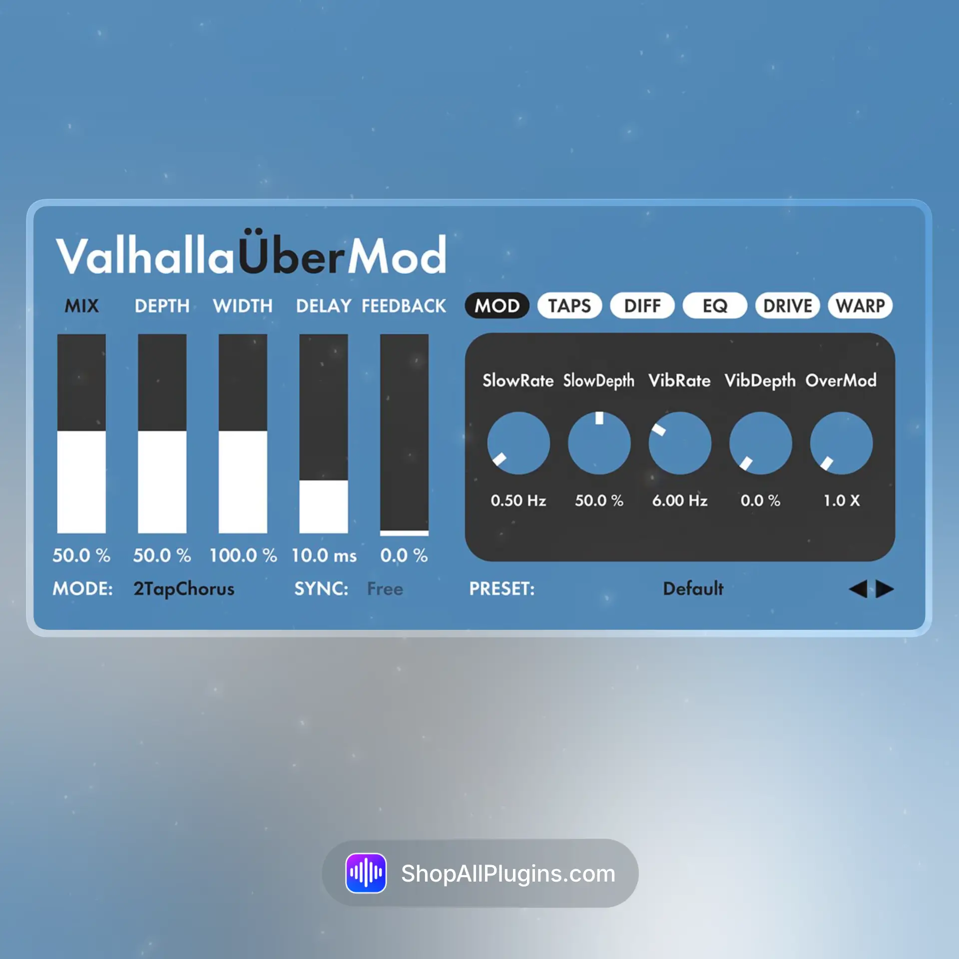 Valhalla UberMod is a multi-tap delay and modulation plugin that can create chorus, flanging, diffused echoes, and reverb-like smears for stereo width and movement.